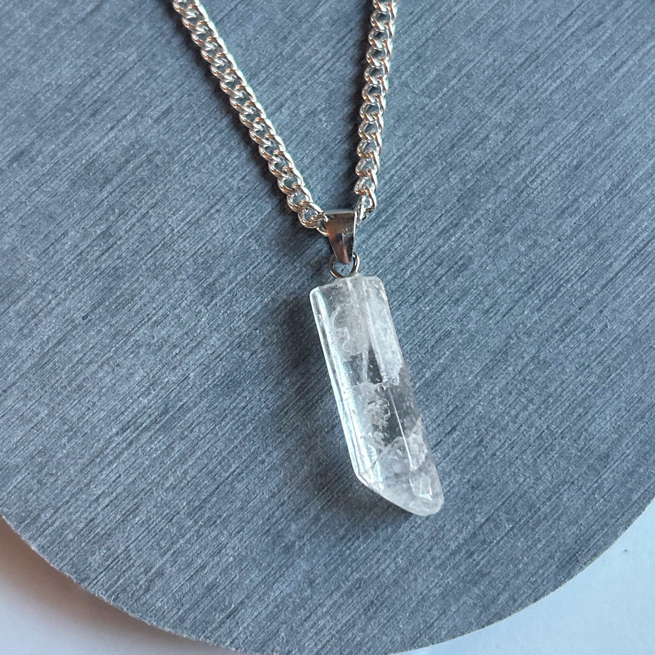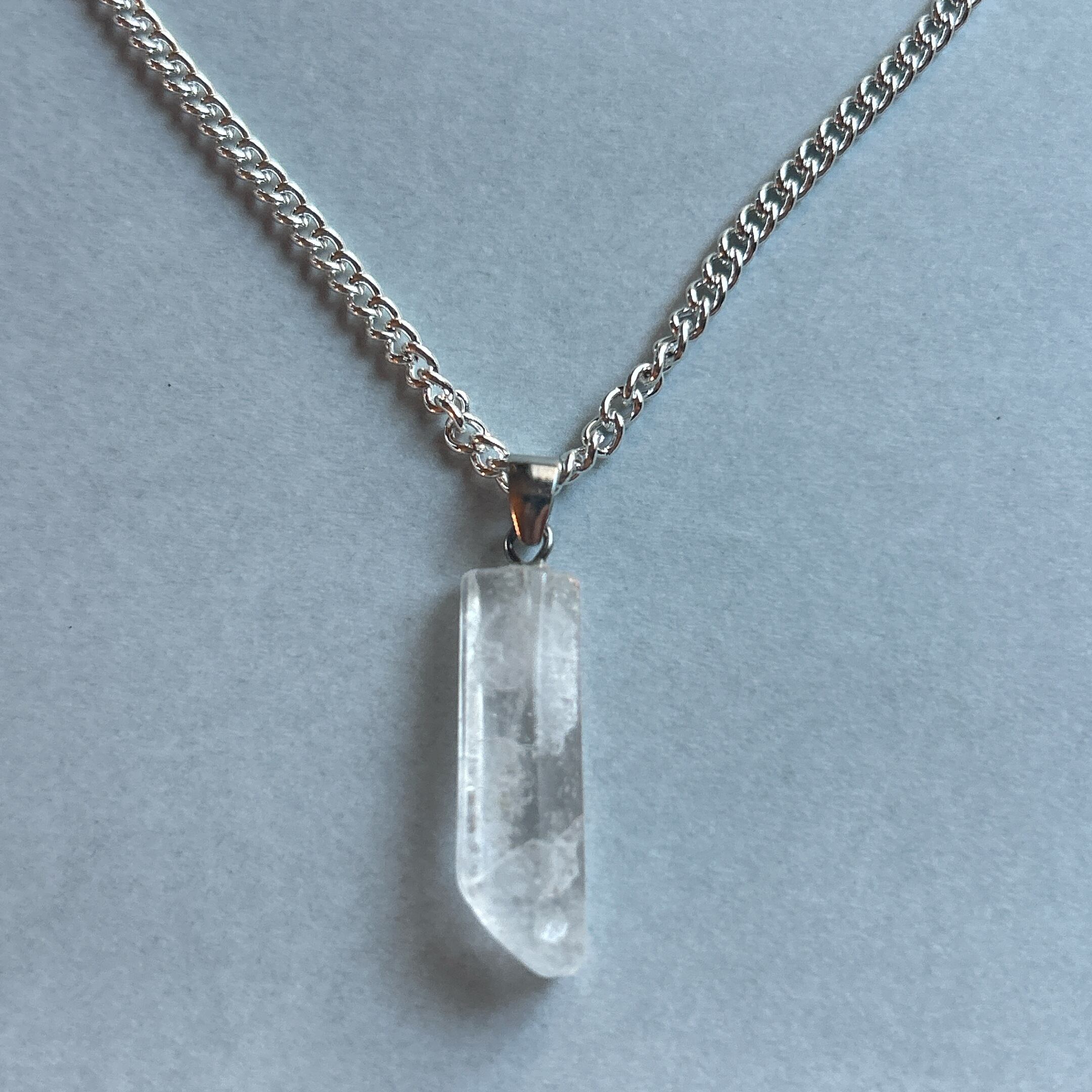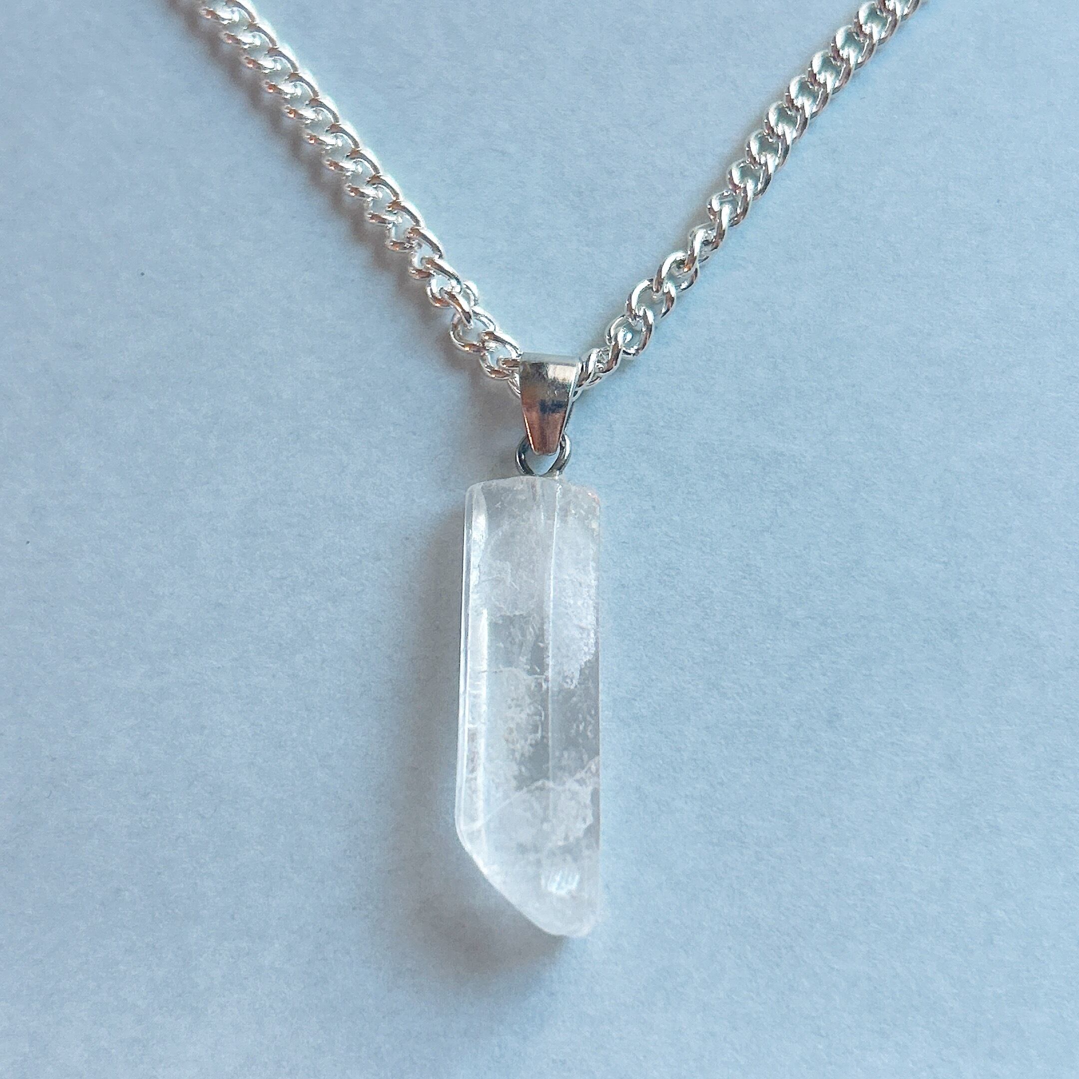 まるで白い霧が結晶の中にそっと宿っているような、クリスタルポイントのネックレス