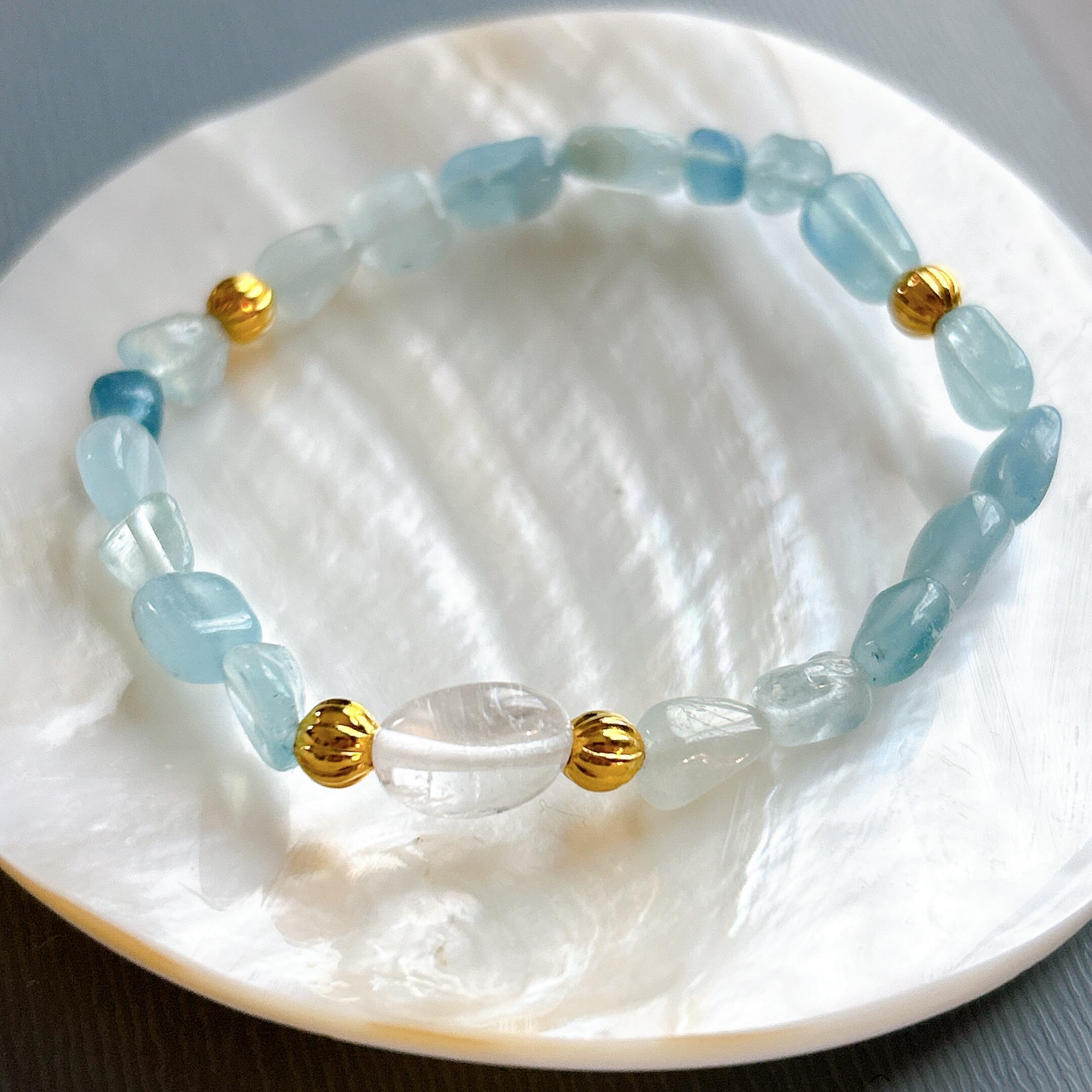 aquamarine and quartz–アクアマリン&水晶ブレス