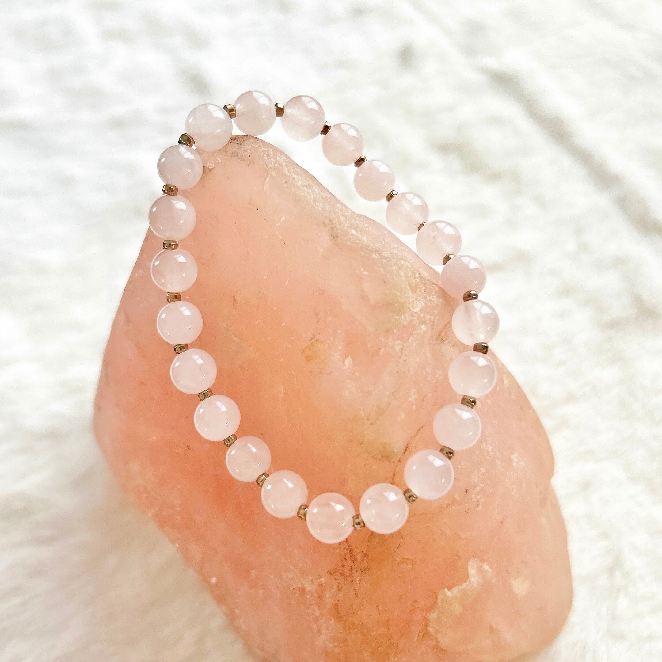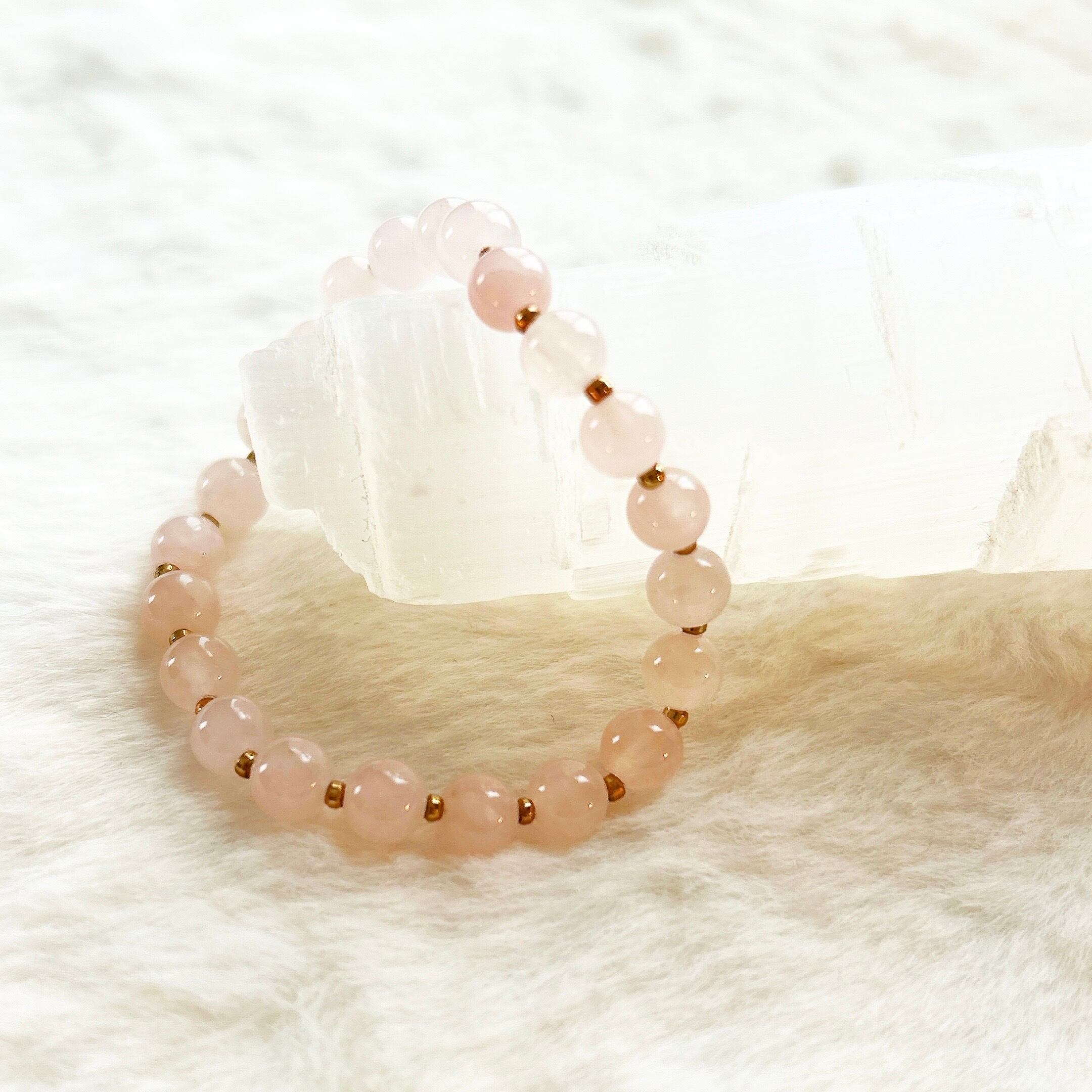 優しいピンクカラーのローズクォーツのみで仕上げた愛らしいブレスレット